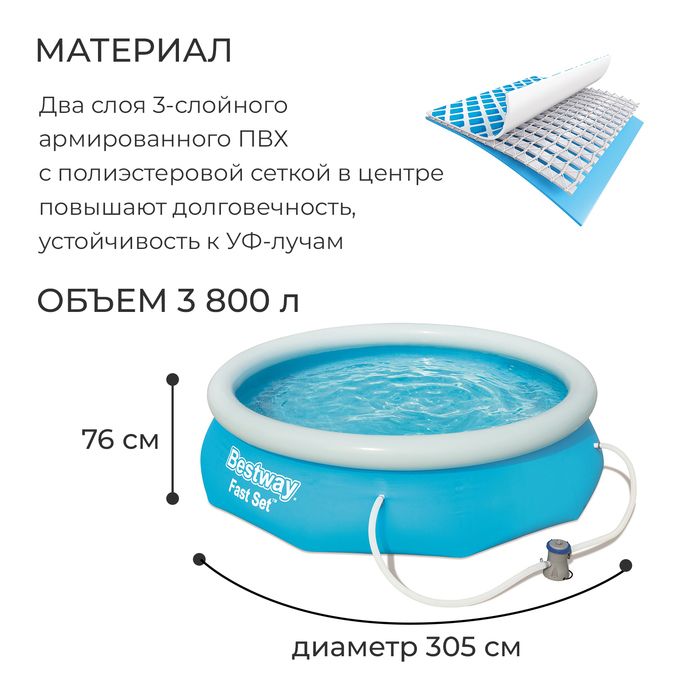 Купить недорого Бассейн надувной Fast Set, 305 х 76 см, фильтр-насос, от 6 лет, 57270 Bestway, в интернет магазине Market777. Недорогие цены на сборные и надувные бассейны Bestway с доставкой по Москве.