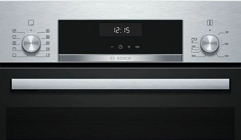 С помощью поворотных ручек и электронного программатора пользователь быстро и точно установит нужные настройки. Заданные параметры выводятся на дисплей. Помимо этого, в панели управления духового шкафа Бош HBJ354AS0Q предусмотрены сенсорные переключатели. Функция автоматического быстрого разогрева позволяет приготовить блюдо намного быстрее. Опция на некоторое время повышает мощность прибора до максимума, а затем переключает на ранее установленный уровень.