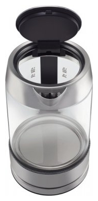 Электрочайник Tefal KI750D30 притягивает взгляды многочисленных пользователей прозрачным резервуаром для воды, изготовленным из высокопрочного термостойкого стекла. Этот материал способен выдержать многочисленные циклы кипячения воды без существенного вреда для своей целостности, поэтому можете не беспокоиться, что при нагреве воды корпус устройства может неожиданно треснуть или лопнуть. Дизайн модели дополнен серебристо-черными конструктивными элементами и вставками, которые в сочетании с прозрачной емкостью смотрятся весьма гармонично.