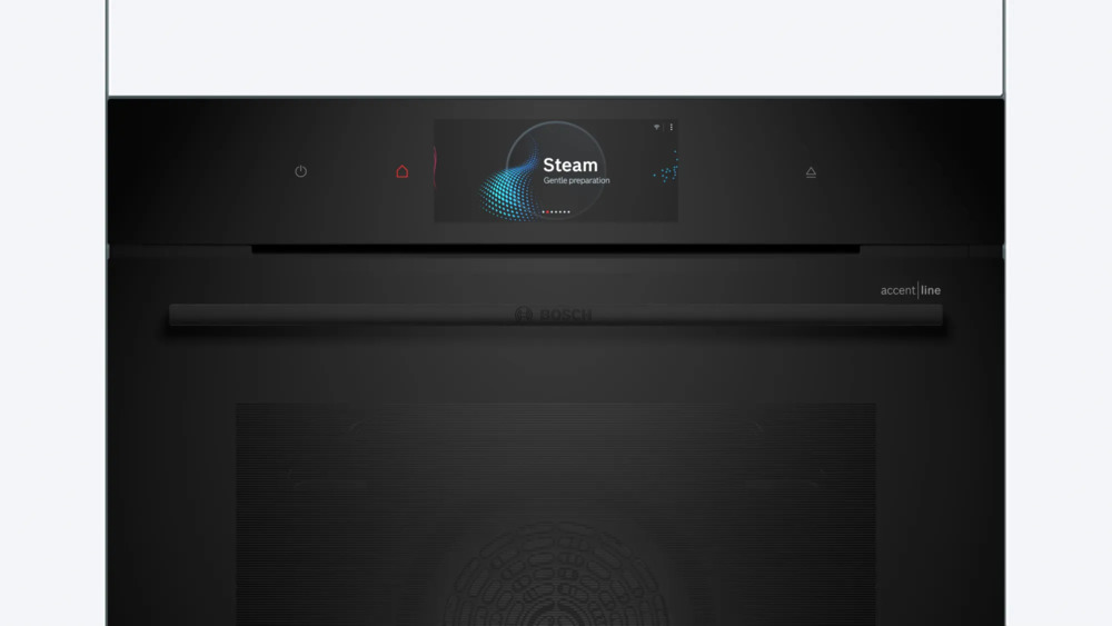 Управление сенсорное, через TouchControl. Цветной TFT‑дисплей ясно отображает параметры, электронные часы помогают планировать процесс. Поддержка Home Connect и меню Bake and Roast Assist дают удобный доступ к настройкам и подсказкам. Для спокойствия предусмотрены защита от детей и система охлаждения/вентиляции.