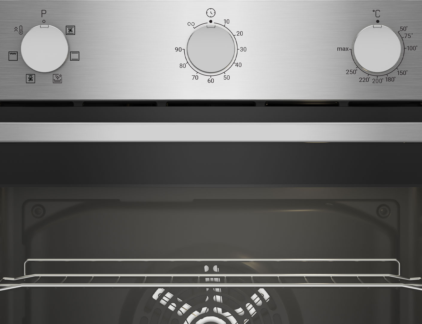 ? Предельная температура нагрева воздуха внутри духовки.