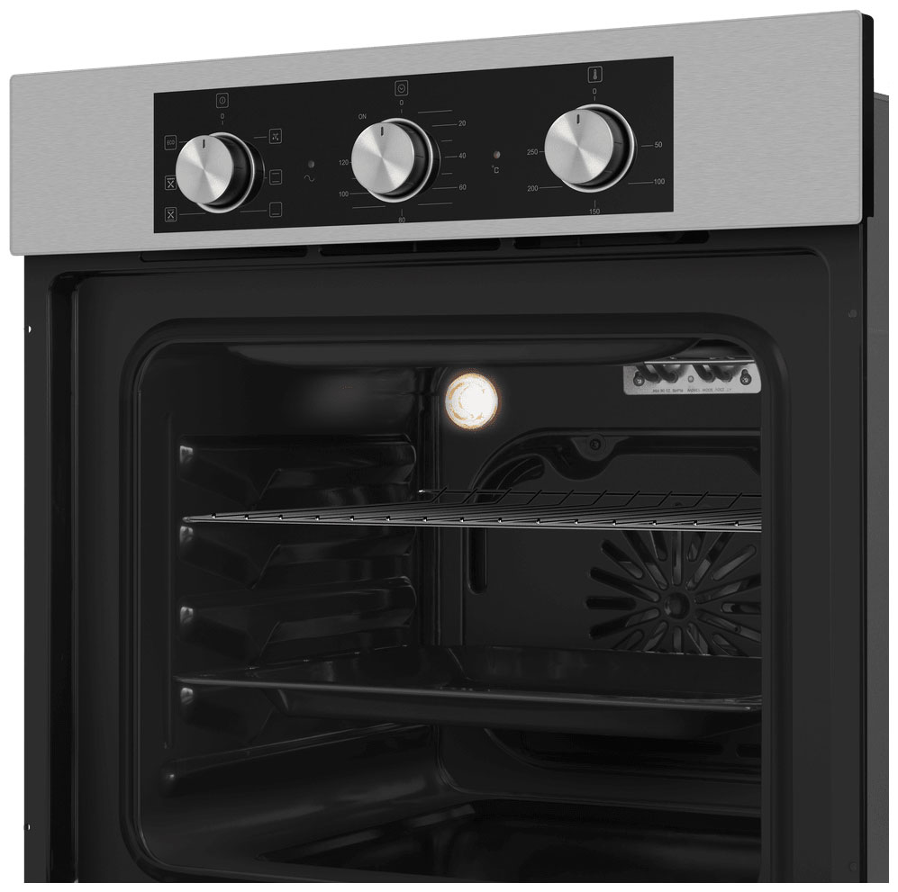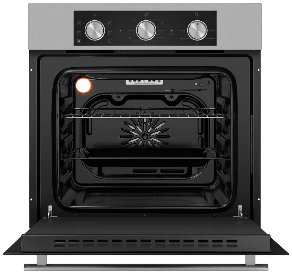 Серия духовых шкафов MAUNFELD AEOF6060S - это сочетание высокого качества сборки, эксклюзивного дизайна и расширенного функционала.Управление происходит при помощи утапливаемых ручек PUSH PULL, увеличенного размера для комфортного использования, которые легко убираются внутрь корпуса после использования, что делает уход за лицевой панелью шкафа максимально удобным. Дверца духового шкафа оснащена тройным стеклом - это гарантия медленного нагревания внешнего стекла, что создает холодный фронт и делает процесс приготовления безопасным исключая возможность ожога при касании. Технология «Холодный фронт» оберегает от ожогов при прикосновении к духовке. Применение тройного стекла защищает дверцу духового шкафа от перегрева. Комбинация верхнего нагрева с работой вентилятора позволит подрумянить продукты до хрустящей корочки не только сверху, но и со всех сторон. Таймер позволяет установить время приготовления блюда от 0 до 120 минут и автоматически отключит печь по его истечении.