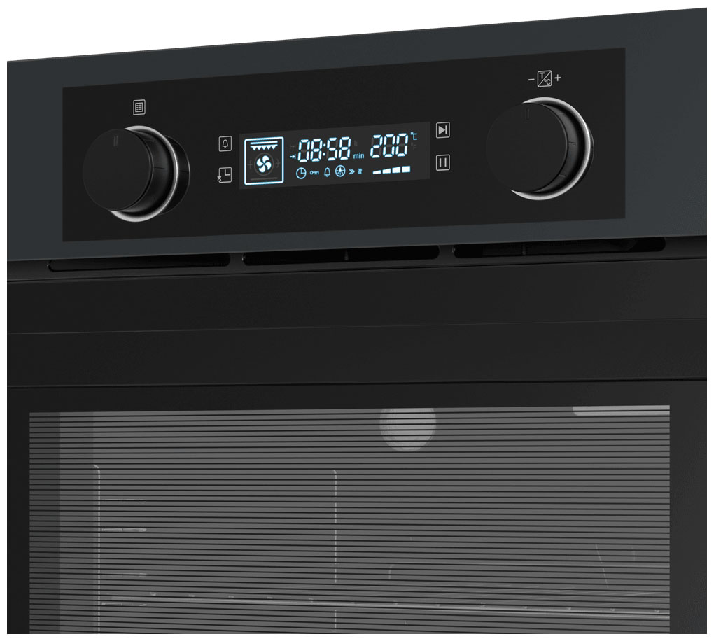 Поворотные ручки PUSH PULL в сочетании с современным сенсорным управлением обеспечивают комфортное и наиболее точную регулировку параметров приготовления. Большой цифровой дисплей духового шкафа отображает всю необходимую информацию.