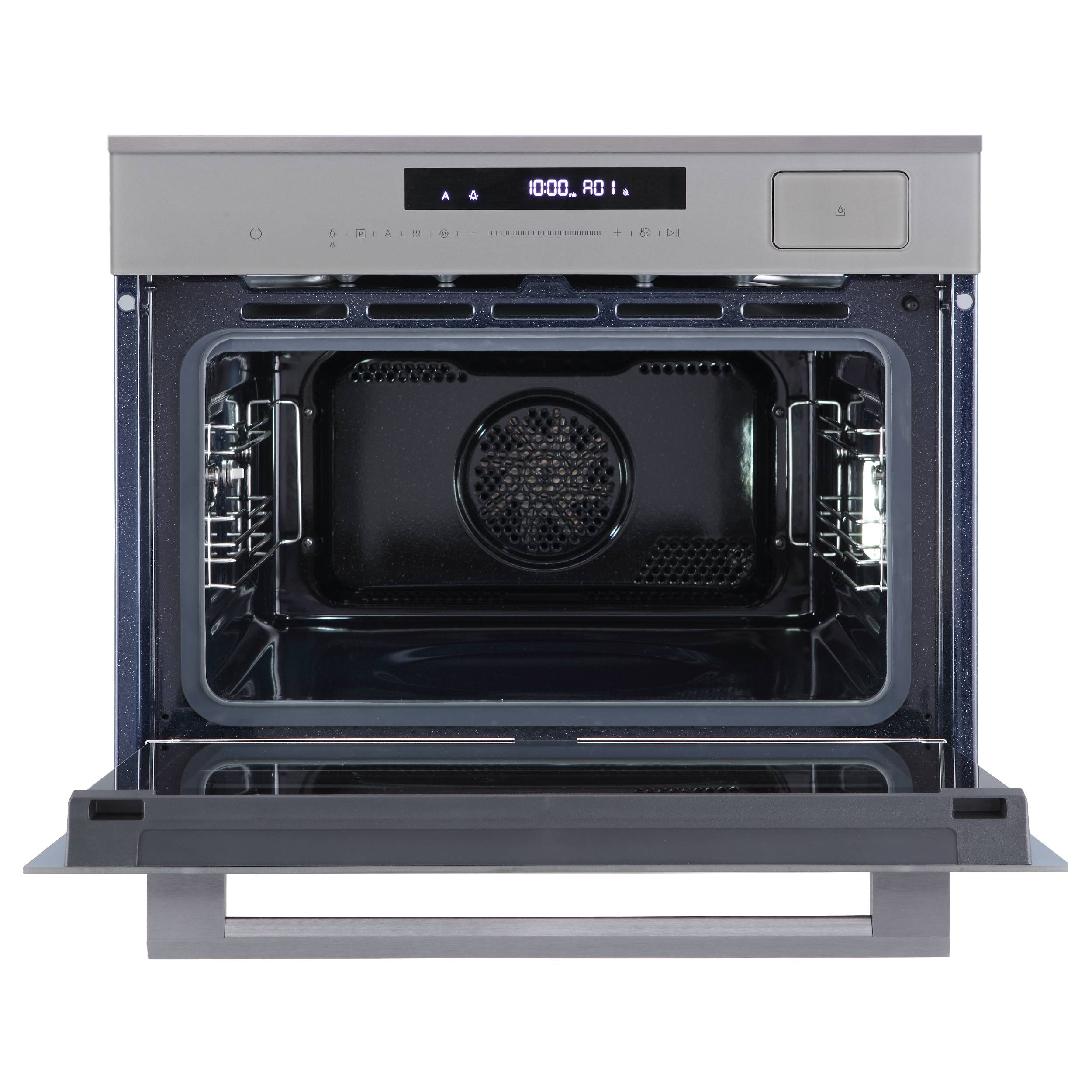 Управление реализовано через сенсорную панель Full Touch Control с белым дисплеем и электронным программатором. Пользователю доступны 11 ручных режимов и 16 автоматических программ. Особое внимание заслуживает встроенный парогенератор SteamCook: он открывает доступ к таким режимам, как SteamChef, пар с горячим воздухом, пар с кольцевым нагревом и специальный цикл для пиццы. Эти комбинации позволяют добиваться хрустящей корочки снаружи и сочной текстуры внутри. Также доступны классические функции — верхний и нижний нагрев, конвекция, большой и малый гриль, турбогриль с вентилятором, эко-режим и расстойка теста. Диапазон температур — от 50 до 250 °C — охватывает большинство кулинарных задач.