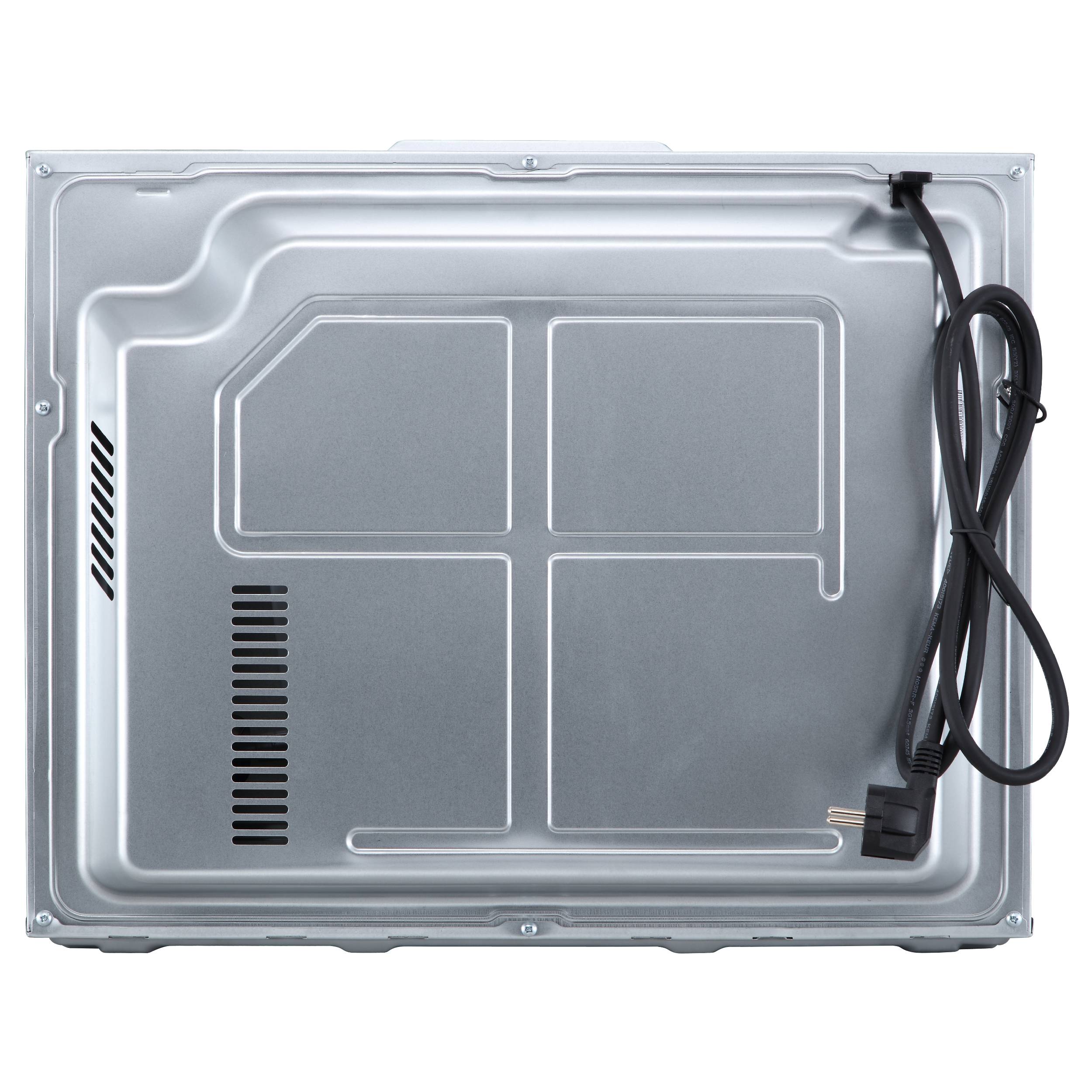 Модель из серии Spectrum — это компактная встраиваемая духовка, сочетающая стильный внешний вид и передовые функции. Серый корпус с акцентами из чёрной нержавеющей стали выглядит современно и легко вписывается в разные кухонные интерьеры. Габариты — 59,5 × 45,4 × 56,8 см — позволяют разместить прибор в стандартной нише размером 46 × 56 × 55 см. Внутренний объём в 50 литров даёт достаточно места для запекания мяса, выпечки хлеба или приготовления целой курицы. Дверца с двойным остеклением сохраняет тепло внутри и остаётся безопасной на ощупь снаружи. Две LED-лампы равномерно освещают камеру, делая контроль за процессом простым даже в тёмное время суток.