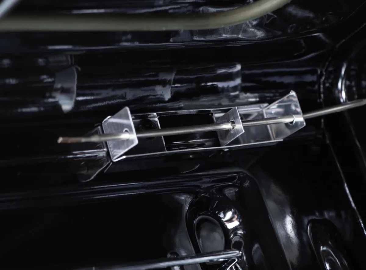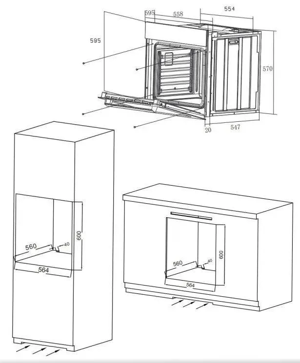Изнутри для освещения духовой шкаф оборудован лампой накаливания и галогеновой лампой, а также покрыт эмалью легкой очистки. Максимальная температура приготовления — 250°С. Устройство оснащено электромеханическим типом управления и десятью режимами работы, включая конвекцию и гриль.