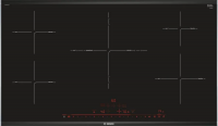 индукционная панель с четырьмя конфорками. Несколько зон нагрева на её поверхности можно объединить в одну, если вам потребуется использовать большую посуду.