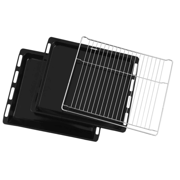 Панель управления состоит из пары утапливаемых переключателей: для выбора уровня нагрева и режима. В вашем распоряжении несколько программ, в том числе гриль, конвекция и специальная настройка «3D-горячий воздух». Кольцевой ТЭН с вентилятором максимально равномерно распределяет тепло, благодаря чему вы можете использовать три яруса одновременно и при этом не беспокоиться о том, что ароматы мяса, овощей и сладкой выпечки перемешаются между собой.