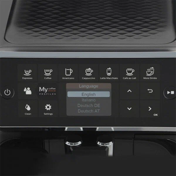 Для подачи молока применяется система LatteGo с функцией регулирования плотности пены. Блок легко вынимается для промывки. Поддон для сбора капель тоже съёмный, что заметно упрощает уход. Объём резервуара для воды 1,8 л – даже в большой семье его не придётся часто пополнять. Доступ к нему, как и к контейнеру для отходов, с передней панели очень удобно.