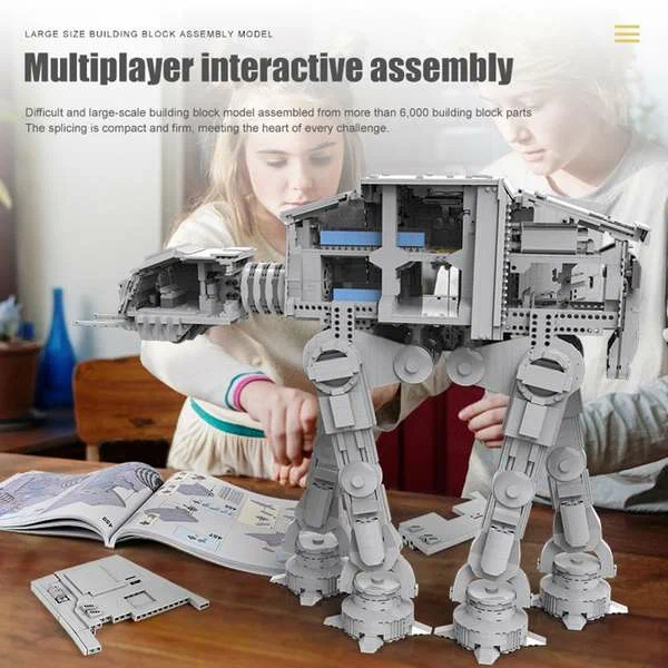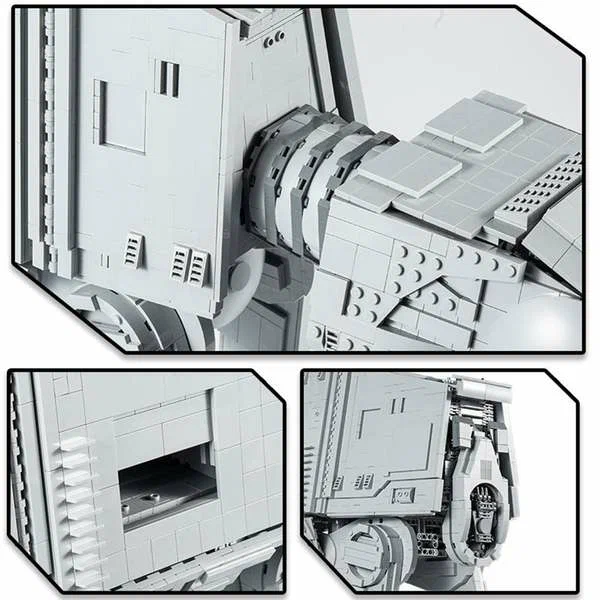 Конструктор «Шагоход АТ-АТ» от фабрики Mould King полностью совместим с Лего. Набор китайского Lego из 6919 деталей принадлежит к разделу «Звездные Войны», к категории «Шагоходы и Спидеры». Модель легендарного боевого транспорта поражает своей масштабностью и реалистичностью: невероятные размеры, четкая детализация внутренних помещений, четыре опорные лапы оснащены подвижным основанием, за открывающейся панелью спрятан батарейный блок и мотор, который приводит в движение лебедку с тросом для десантирования. Собранная модель станет прекрасным украшением выставочной полки или локацией для новых сюжетов военных действий на далеких планетах. Создавайте свои сценарии из серии Star Wars с нашим интернет-магазином. Набор электрики: батарейный блок — 1 шт., М-мотор — 1 шт.; в набор НЕ ВХОДЯТ элементы питания для батарейного блока AA — 6 шт.