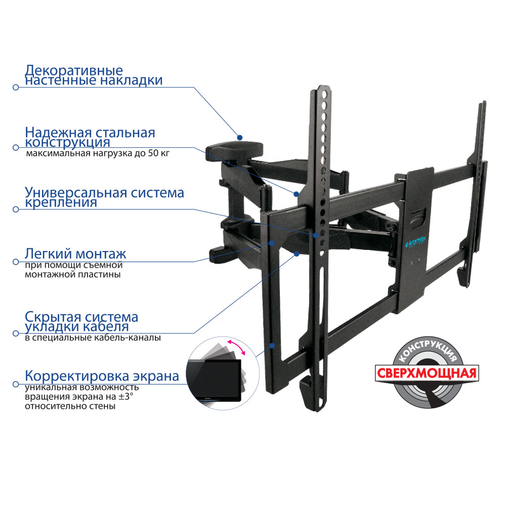 Купить недорого Kromax ATLANTIS-80, в интернет магазине Market777. Недорогие цены на наклонно-поворотные кронштейны Kromax с доставкой по Москве.