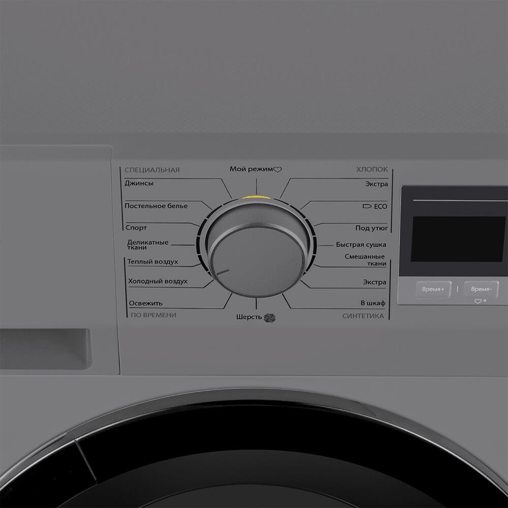 Прибор предлагает 16 режимов сушки, включая экстра под утюг для хлопка, экстра в шкаф для синтетики, а также режимы для смешанных тканей, шерсти, деликатных вещей, постельного белья, джинсов, спортивной одежды и специальных тканей. Также доступна функция освежения паром, сушка по времени, а также теплый и холодный воздух. Внутренняя подсветка обеспечивает удобство использования, а функция антисминания помогает сохранить вещи в идеальном состоянии. Устройство также оснащено защитой от детей, что обеспечивает безопасность использования.