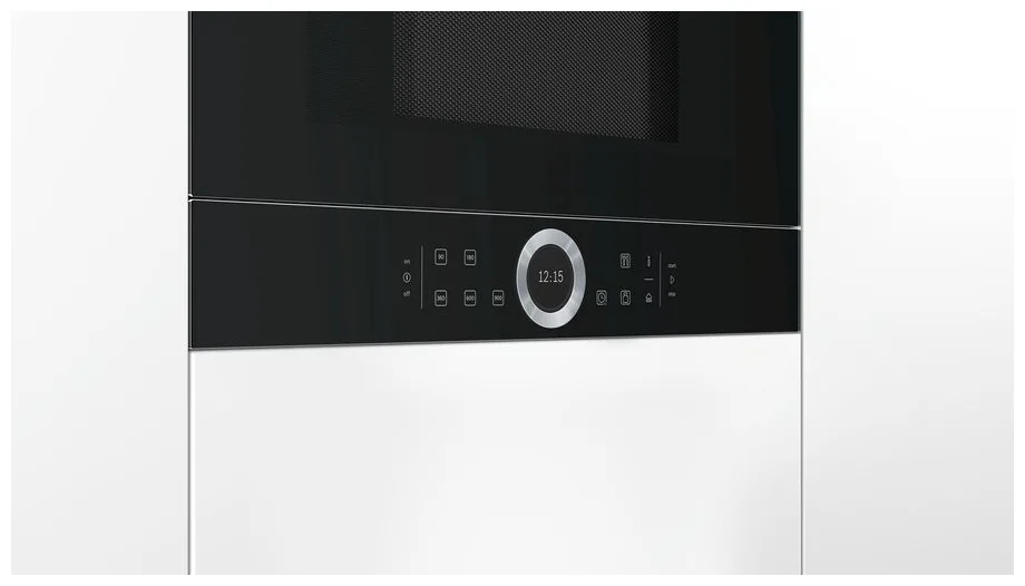 Встроенная микроволновка BOSCH BFL634GB1 может похвастаться лёгким управлением через сенсорный экран TFT-дисплей. На дисплее отображается время работы, мощность и все основные функции. Для включения, выключения и управления процессом приготовления пищи достаточно касаний пальцами по экрану. По центру расположено кольцо управления, поворотами которого можно быстро увеличивать или уменьшать время работы. Такая концепция управления сделала процесс приготовления пищи в микроволновке очень простым и понятным.