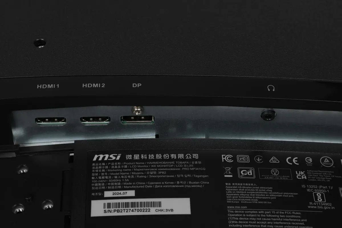 Характеристики Монитор 34" MSI PRO MP341CQ , VA, 3440x1440, 100Hz, Black 9S6-3PB2CT-041