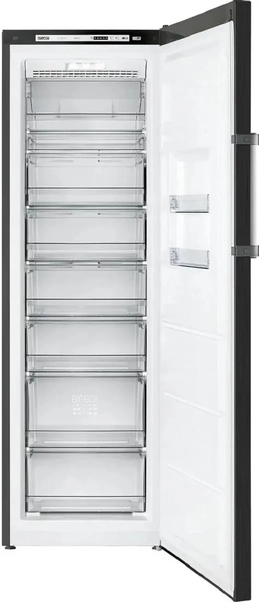 Черная морозильная камера «Атлант» 7606-150 N оснащена системой охлаждения No Frost, светодиодным внутренним освещением. Способ управления — электронный. Корпус сделан из прочного металла, устойчивого к образованию коррозии, покрыт с внутренней стороны антибактериальным составом. Габариты — 186,8х62,8х59,5 см. Вес изделия — 71 кг.