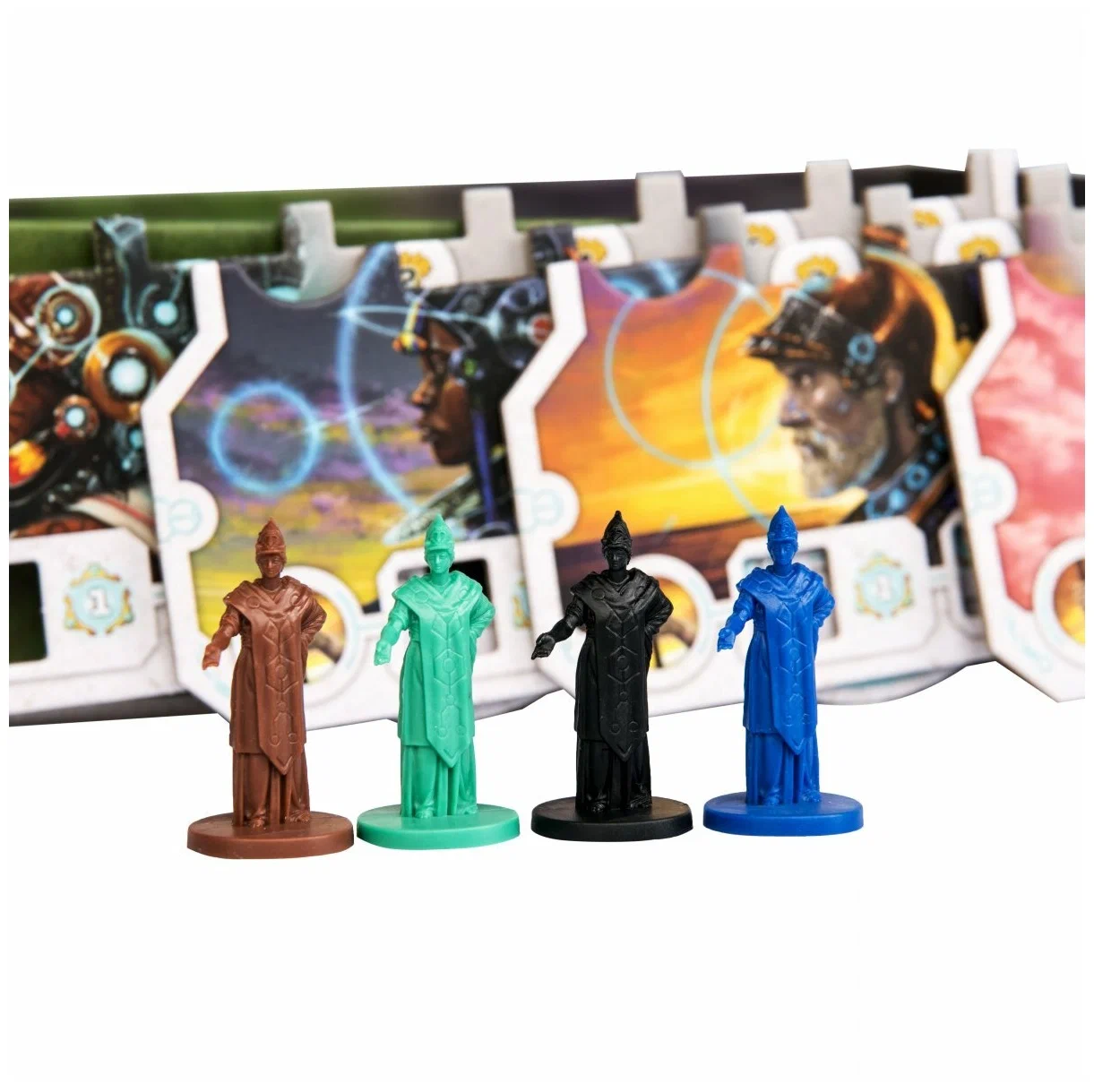 строить уровни храмов и использовать уникальные свойства зодиаков.Количество действий в раунде определяют игроки. Тот, кто к концу партии набирает больше призовых очков, становится победителем.