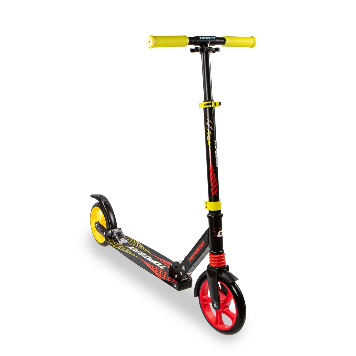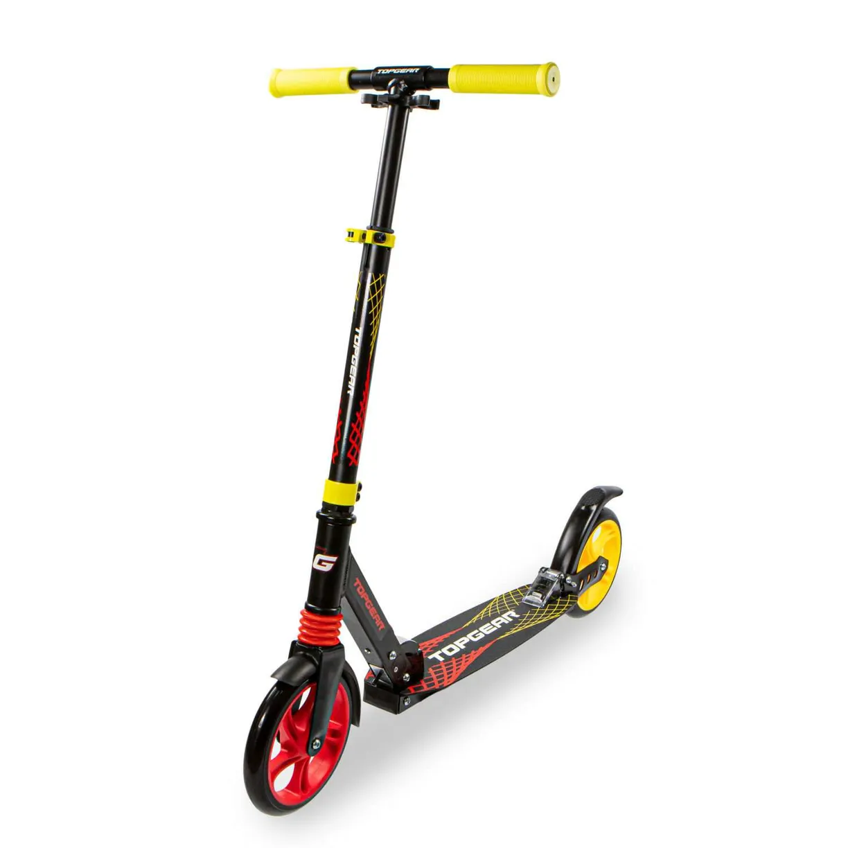 Самокат TOPGEAR 2-х колёсный, выполненный из лёгкого алюминиевого сплава, диаметр колес 200мм, передняя и задняя амортизация, ручки складные,TPR,максимальная нагрузка до 100 кг. Размер самоката в собранном виде: 96х13х92 см. Подходит для детей от 14 лет.