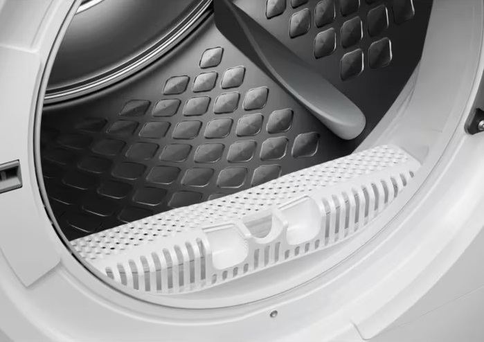 Тип сушки — тепловой насос — снижает энергопотребление и обеспечивает низкие рабочие температуры, что помогает сохранить структуру тканей и яркость окраски. Система SensiDry бережно управляет температурой, продлевая жизнь вещам, а 3DScan выполняет быстрый анализ загрузки и автоматически подбирает оптимальную последовательность действий, чтобы добиться равномерного результата без лишних затрат. Инверторный мотор работает устойчиво и тихо, уровень шума не превышает 61 дБ, а реверсивные движения барабана и функция антисминания уменьшают вероятность образования складок, облегчая последующую глажку или вовсе делая её ненужной. Внутренние программы адаптированы под широкий спектр материалов: есть режимы для хлопка (включая экономичный «Хлопок Эко» и вариант «Хлопок в шкаф»), синтетики, постельного белья, деликатных изделий, смешанных загрузок, верхней одежды, быстрой сушки микс, шерсти, одеял и пуховиков; доступна также сушка по времени для ситуаций, когда нужен точный интервал.