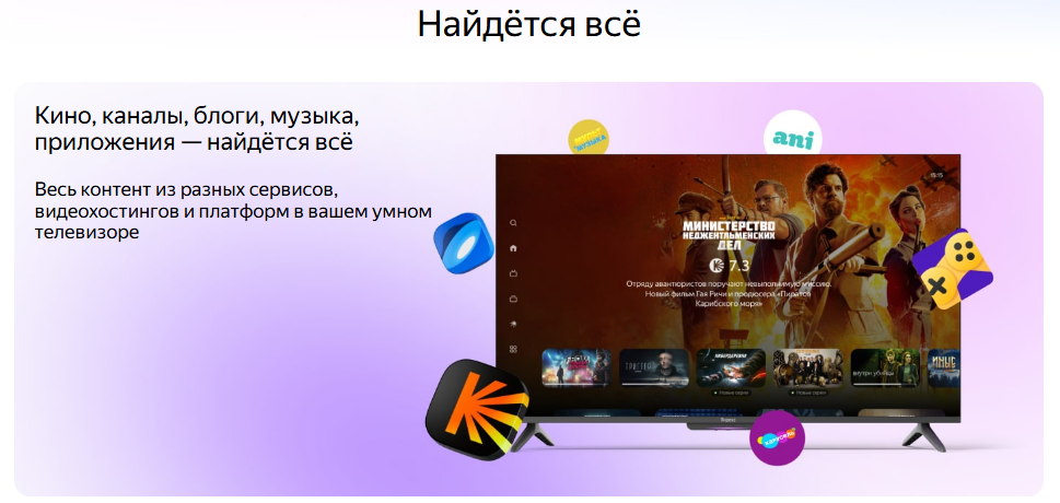 Технология Yandex Picture Quality делает просмотр любого формата, будь то блокбастер, матч или лайв любимой группы, в исключительном качестве 4К, ведь инженеры Яндекса настроили точную цветопередачу, чтобы была видна каждая деталь.