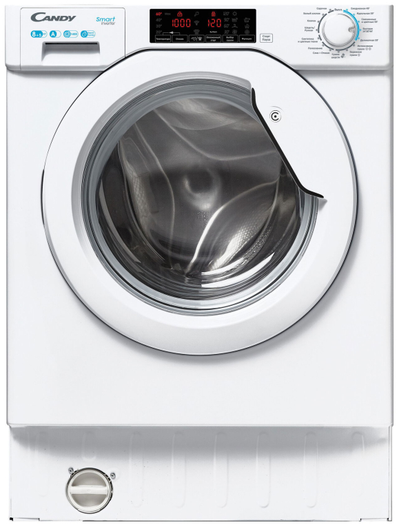 Cтирально-сушильная машина Candy Smart CBD 485TWM/1-07 (арт. 31801036) с загрузкой до 8 кг в режиме стирки и до 5 кг в режиме сушки.
