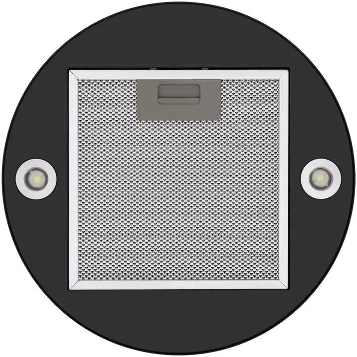 Черная островная вытяжка Maunfeld Lee Light Isla 35 в круглом стальном корпусе дополнена козырьком и 1,5-метровым сетевым кабелем. Аппарат мощностью 222 Вт поддерживает работу в трех режимах и трех скоростях. Модель получила галогеновое освещение, расположенное сбоку, ручное управление и встроенную индикацию. При высоте 2,6 м рекомендуемая площадь составляет 40 м². При этом производительность в режиме отвода и рециркуляции находится на уровне 1050 м³/ч. Во время работы шум не превышает отметку в 61 дБ.